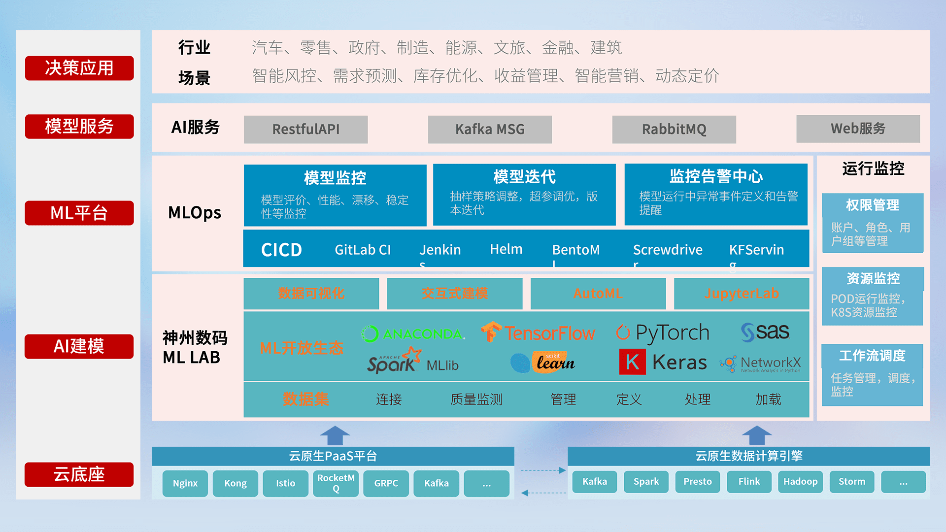 数据+模型双引擎驱动,,,面向智能服务场景,,快速灵活利用AI技术,,,,支持业务决策,,助力企业智能化转型破局。。